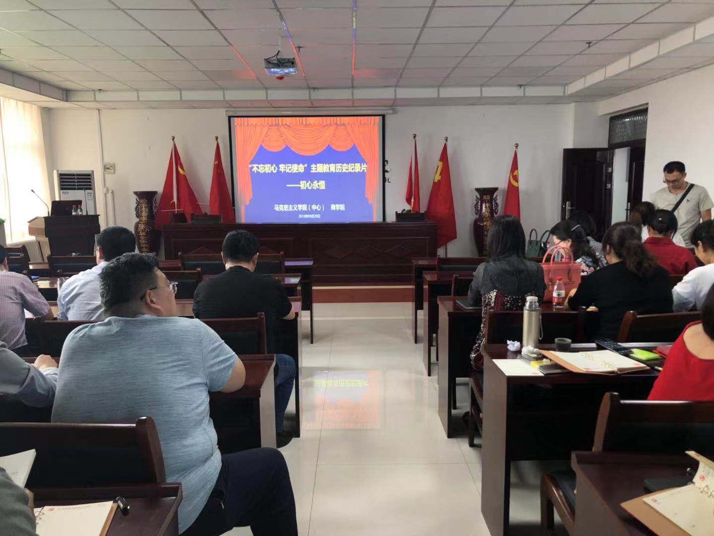 根据威尼斯官网“不忘初心、牢记使命”主题教育工作安排,9月29日下午,威尼斯官网全体教职工在E-1302会议室集中观看大型历史纪录片《初心永恒》,重温中原大地的红色革命。