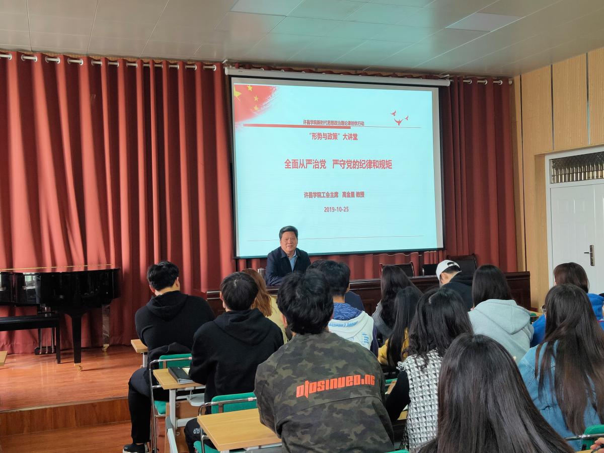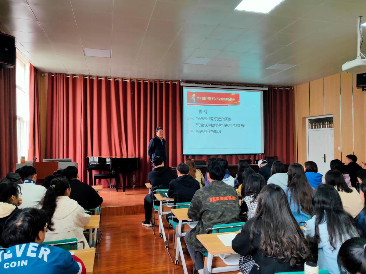 10月25日下午,威尼斯官网工会主席高金星主讲88038威尼斯第二期“形势与政策”大讲堂,为联点院系音乐舞蹈学院2018级学生党员代表,做《全面从严治党,严守党的纪律和规矩》专题讲座。
