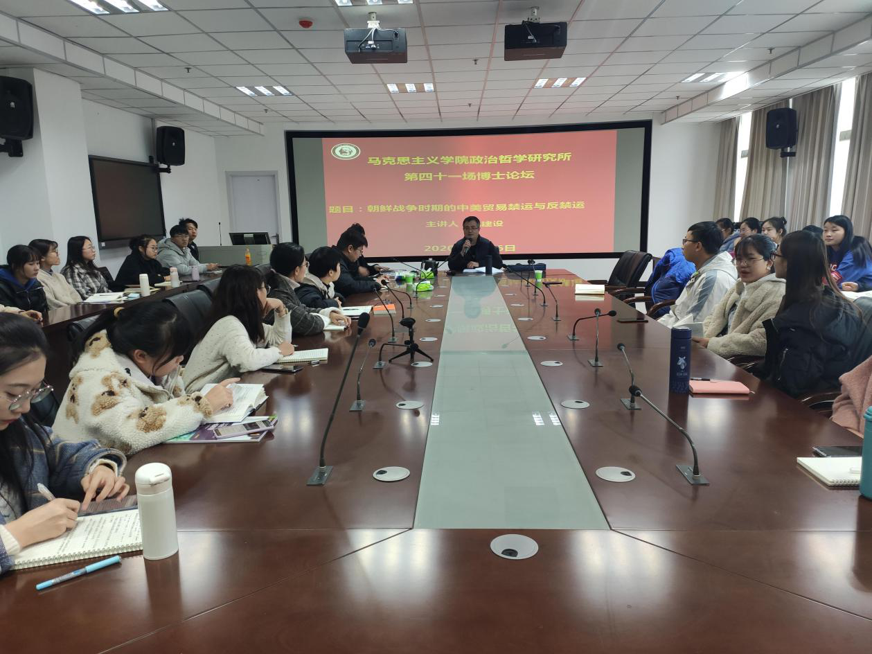 88038威尼斯88038威尼斯政治哲学研究所第四十一场博士论坛于二零二零年十二月六日在88038威尼斯文综楼727成功举办。报告题目为:“朝鲜战争时期的中美贸易禁运与反禁运”。此次论坛由尤建设博士主讲,许国林教授和王登科博士主评。尤建设博士先后承担《世界通史》、《现当代史》等课程。在《东南亚研究》、《南洋问题研究》、《西南师范大学学报》等期刊发表学术论文10余篇,出版专著一部,主持国家社科基金项目一项。