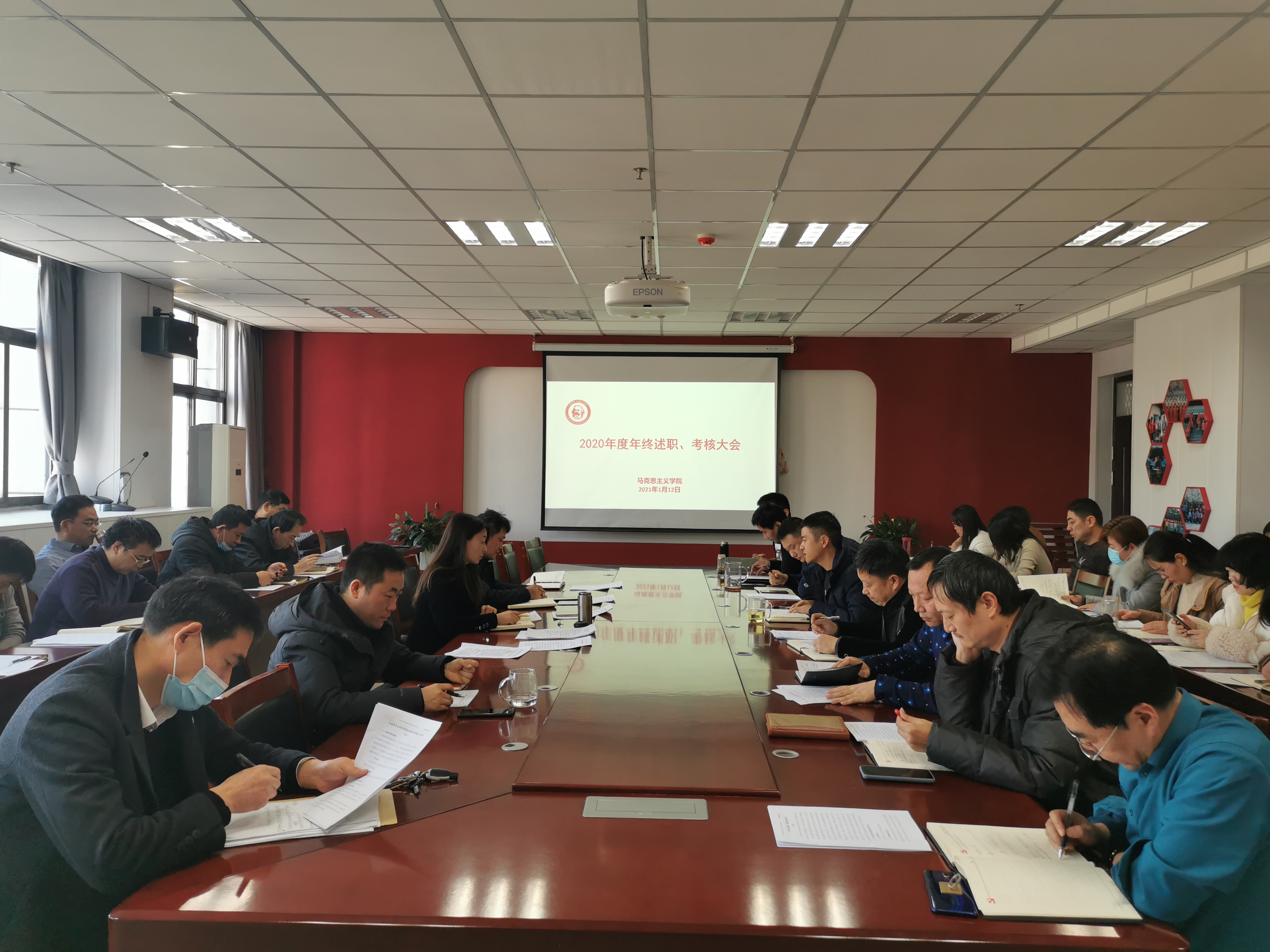 1月12日下午15:30,88038威尼斯党委在文综楼1130会议室召开2020年度年终述职、考核工作会议。全体教职工参加会议,会议由院党委书记谢依楠主持。