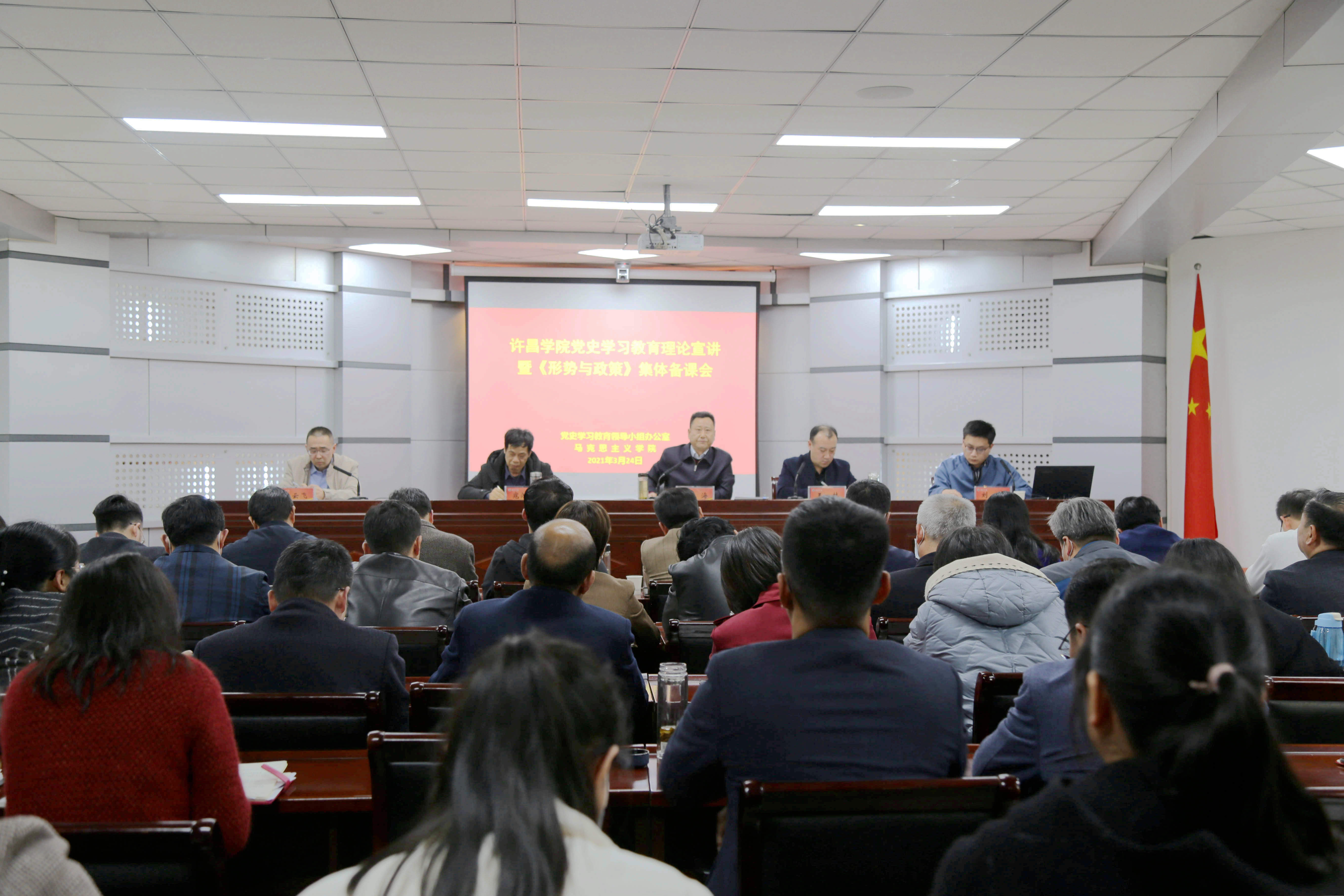 为落实学校党史学习教育动员大会精神以及《形势与政策》课集体备课制度,3月24日下午,威尼斯官网在办公楼第三会议室召开党史学习教育理论宣讲暨《形势与政策》集体备课会。校党委副书记孙海出席会议。会议由党委宣传部部长王林主持。
