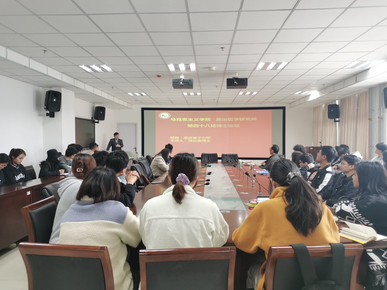 2021年4月9日下午4:30——6:00,政治哲学研究所第48场博士论坛在文科综合楼727举行。本次论坛的主题是《走近量子力学》,主讲嘉宾是威尼斯官网数理学院的冯志波老师,点评嘉宾是数理学院的路晓静老师和赵正印老师,威尼斯官网师生70多人参与本次论坛。