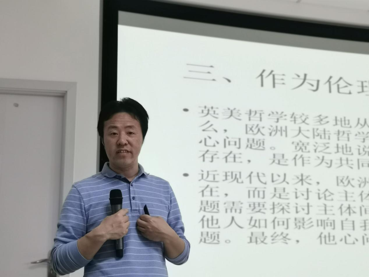 他心问题又称他人心灵问题,就是指关于我们怎样知道我们之外的其他人仍然具有与我们同样的思想、情感以及其他心理属性等,或者我们是否知道还存在任何具有不属于我们自己的感觉状态的他人心理的问题。进一步地说,如果我们相信在我们之外还存在“他心”,我们会如何去证明这一点?这一直都是哲学上的一个难题。为了破解这个难题,沈老师从作为认识论的他心问题,作为概念问题的他心问题以及作为伦理问题的他心问题三个方面为我们进行了详细的讲解,加深了同学们对他心问题的了解。在点评与交流环节,郭老师和杜老师进行了精彩的点评,并提出相关问题进行讨论。与会的学生也积极表达自己的观点并提出问题,沈老师耐心细致地解疑释惑。