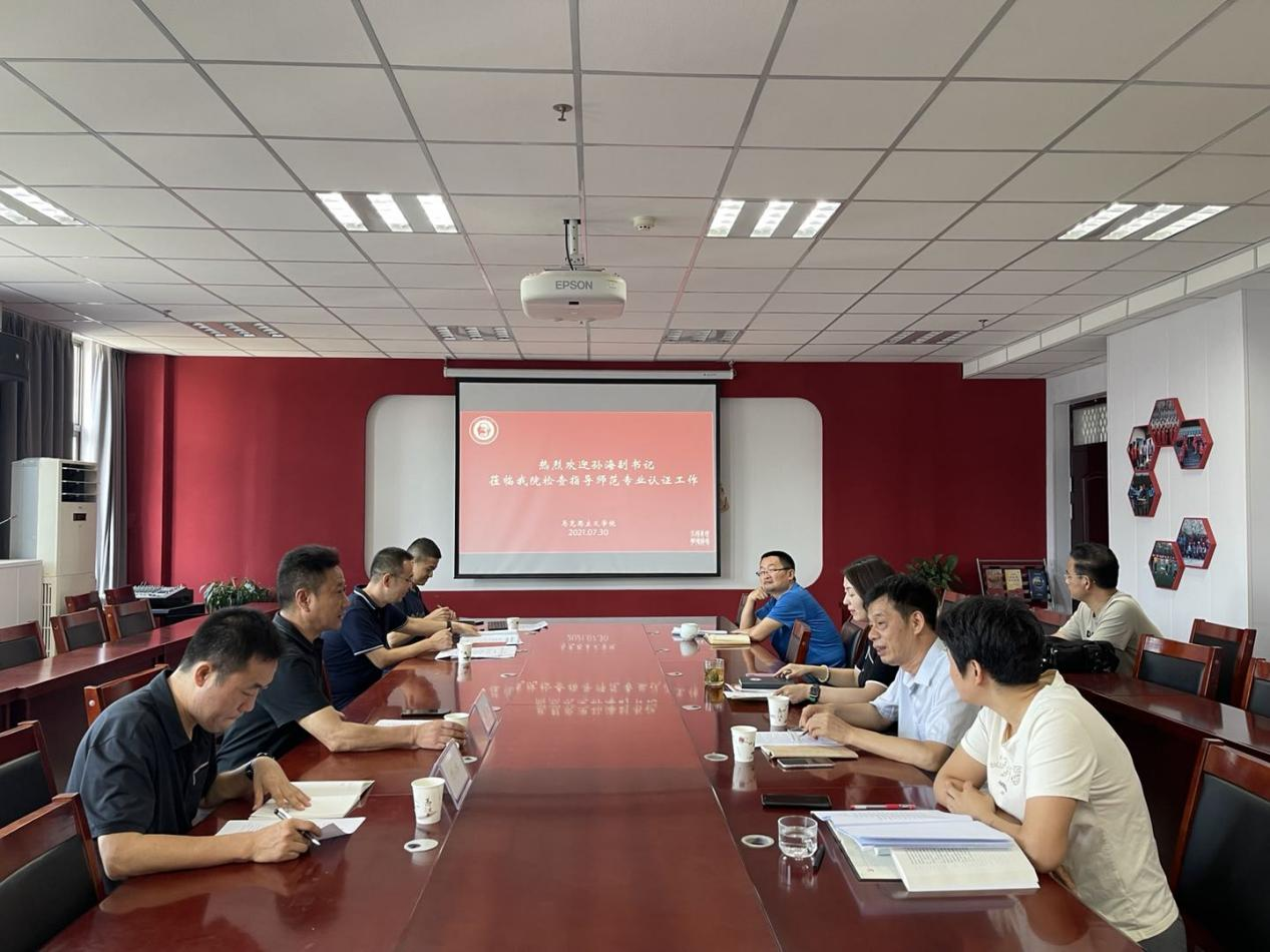 2021年7月30日下午,校党委副书记孙海到威尼斯官网检查指导师范专业认证工作,校党委宣传部副部长樊六辉陪同,威尼斯官网党委书记谢依楠、院长寇鸿顺、副院长林云飞、思想政治教育教研室主任菅强以及参与师范专业认证工作的骨干教师参加会议。