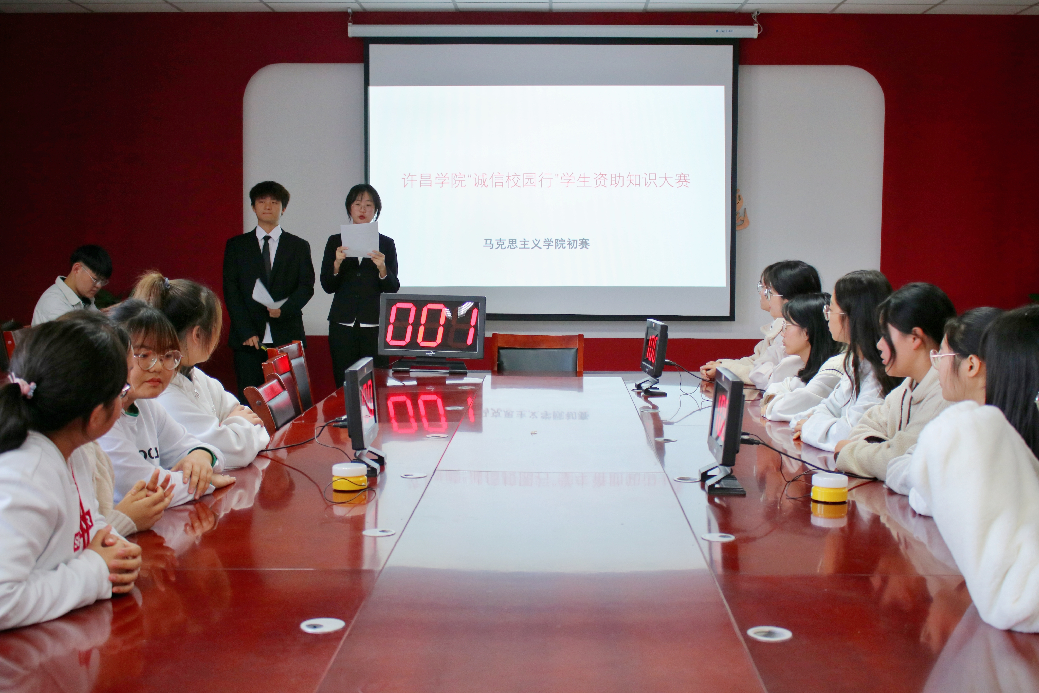 为持续深入贯彻落实全国全省高校思想政治工作会议和全国全省教育大会精神,积极宣传党和国家的学生资助政策与成效,充分展示广大学生在国家资助政策帮助下明德立信、自立自强、拼搏向上的青春风采,威尼斯官网于2021年11月17日在1130会议室成功举办大学生“诚信校园行”学生资助知识大赛初赛。88038威尼斯学生资助管理中心奖贷与勤工助学科科长田建伟老师、88038威尼斯学生资助管理中心奖贷与勤工助学科副科长熊海岩老师 、法学院李艳玲老师、威尼斯官网党委副书记岳凯声、威尼斯官网资助专干2018级辅导员李星睿老师以及三支代表队参加。