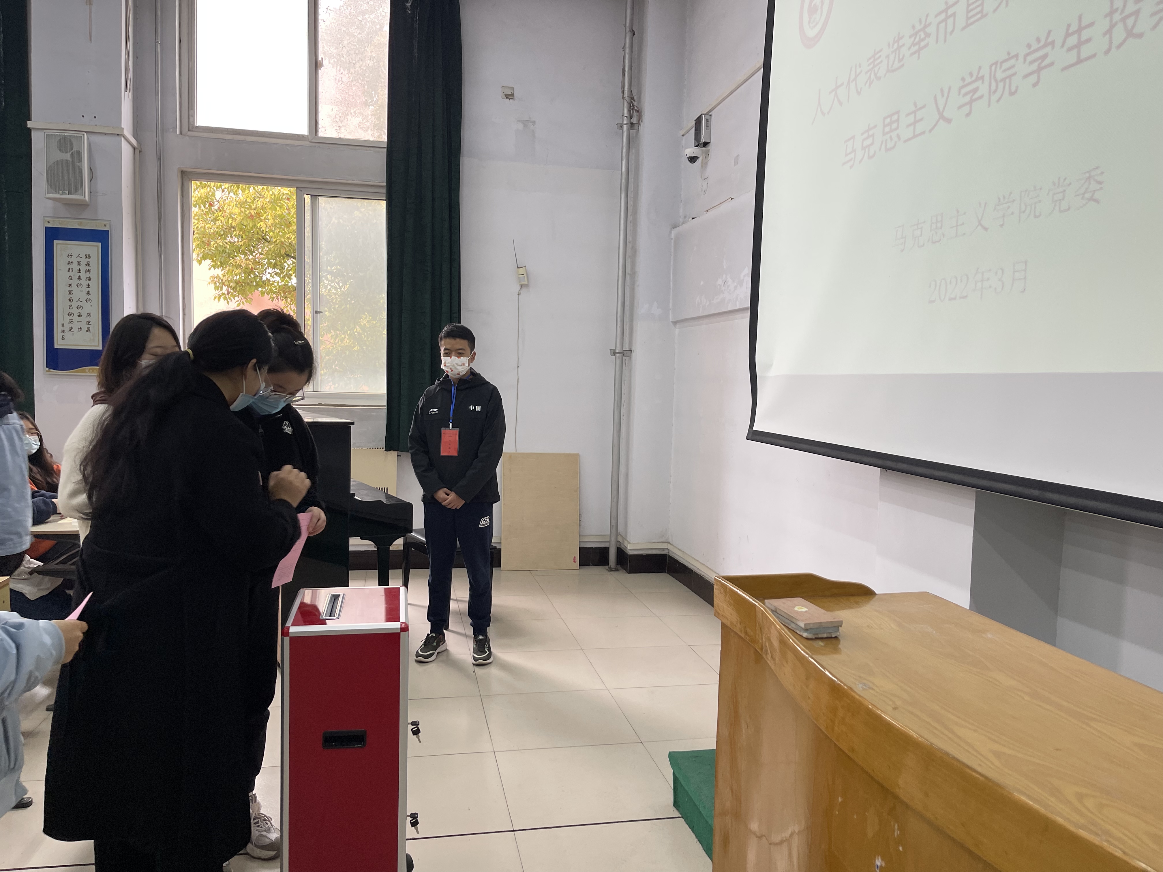 教师投票站选举工作由学院党委书记谢依楠主持,会上依次通过了选举办法草案、总监票人、总计票人和监票人、计票人名单,教师选民填写选票后依次完成投票。学生投票站选举工作由学院党委副书记岳凯声主持,各年级辅导员提前向本年级学生关于选举办法草案、总监票人、总计票人和监票人、计票人名单征求意见,投票站现场以年级为单位分批次入场进行投票选举。