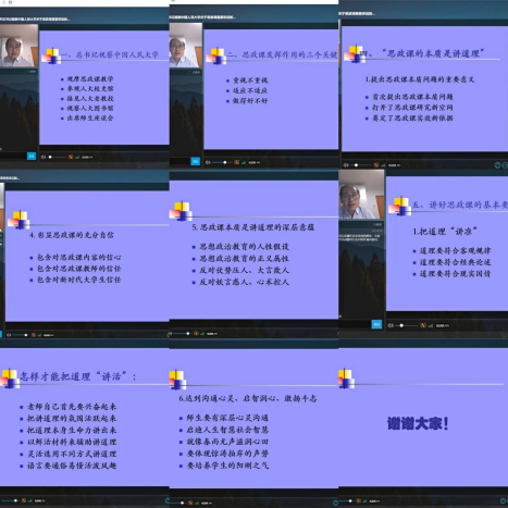 全体教师认真观看学习了“习近平总书记考察中国人民大学关于思政课重要讲话的理论解读”直播。主讲人刘建军教授围绕“思政课的本质是讲道理”这一主题,从总书记视察中国人民大学的主要活动、思政课发挥立德树人作用的三个关键问题、打造高精尖水平思政课、思政课的本质是讲道理、讲好思政课的基本要求等五个方面进行了深入浅出的解读,也为思政课教师如何讲好思政课给予了思想上的启迪。