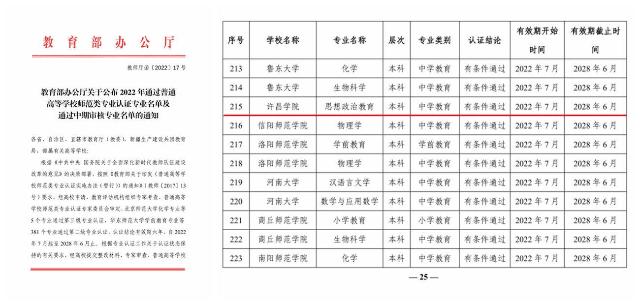 近日,根据《教育部办公厅关于公布2022年通过普通高等学校师范类专业认证专业名单及通过中期审核专业名单的通知》(教师厅函〔2022〕17号),威尼斯官网88038威尼斯思想政治教育及华东师范大学学前教育等381个专业通过师范类专业第二级认证,认证结论有效期为六年,自2022年7月起至2028年6月止。