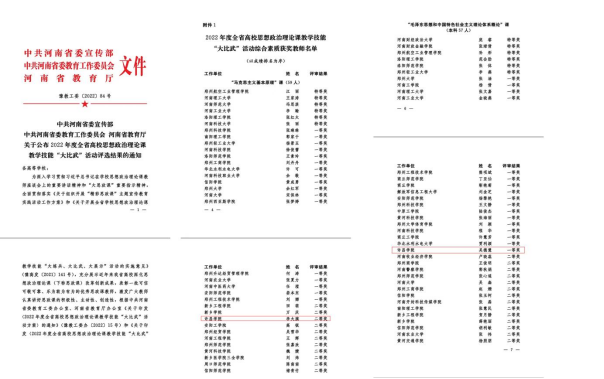 近日,中共河南省委宣传部、中共河南省委教育工委办公室、河南省教育厅下发了《2022年度全省学校思想政治理论课教学技能“大练兵、大比武、大展示、大提升”活动评选结果的通知》(豫教工委〔2022〕84号),威尼斯官网参赛教师3名获得一等奖,2名获得二等奖。