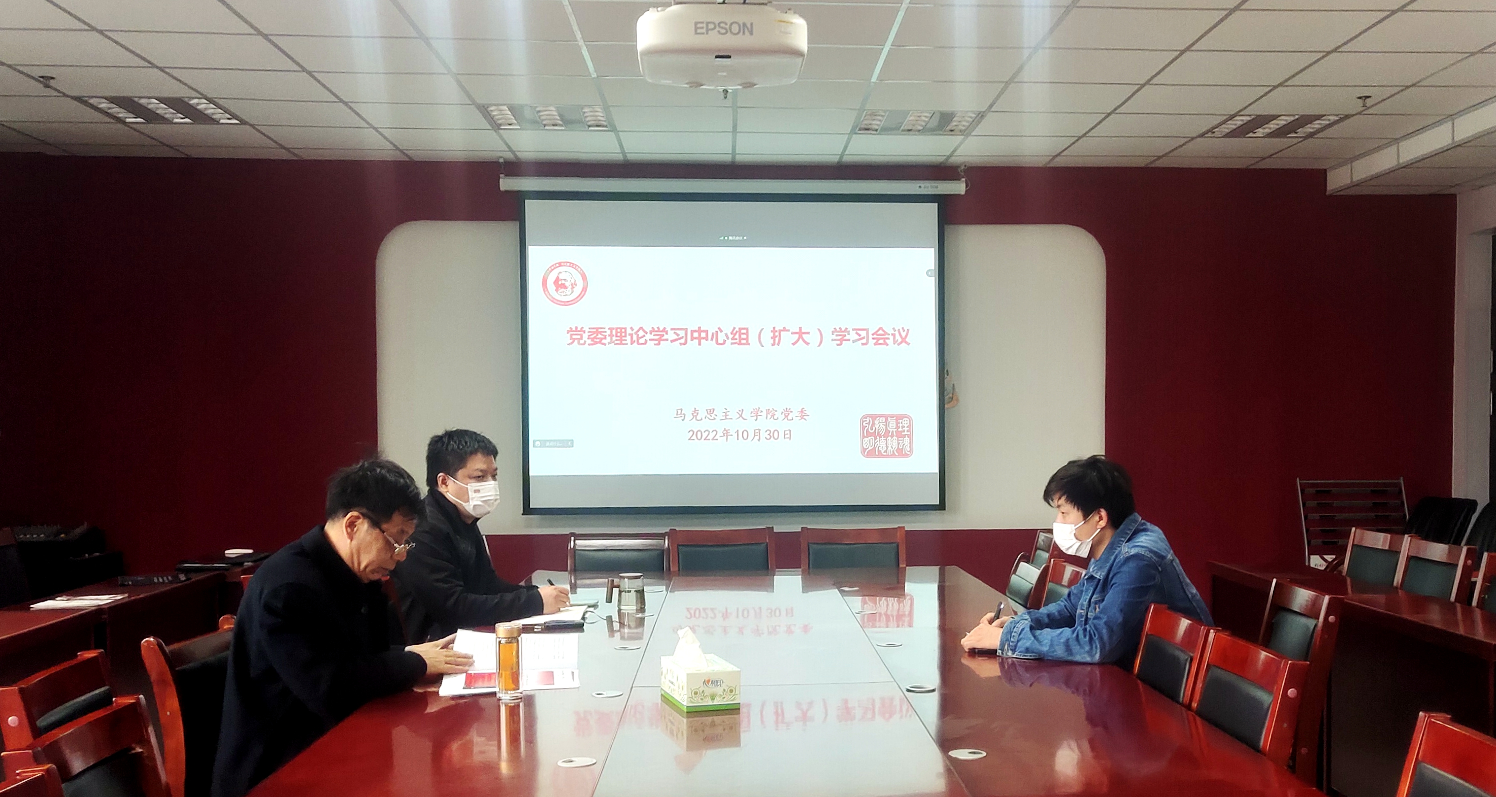 10月30日下午,88038威尼斯党委通过线下主会场和腾讯会议线上平台相结合的形式召开理论学习中心组(扩大)学习会议,专题学习党的二十大精神。全院科级以上党员干部参加会议,会议由党委书记谢依楠主持。