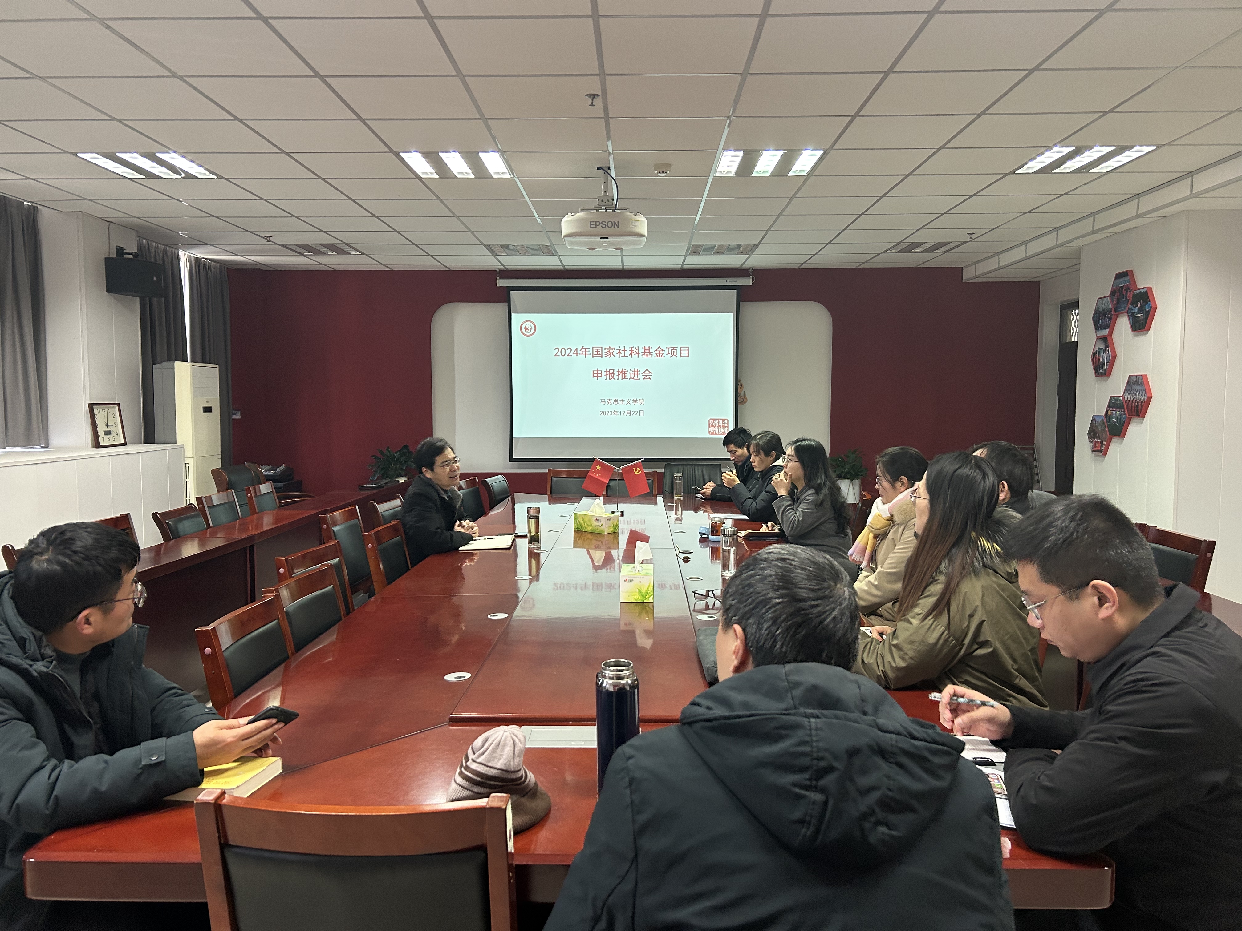 会上,参会教师依次汇报了2024年度国家社科基金项目的选题凝练、方向把握、特色亮点、团队组建、论证情况、下一步的打算、遇到的困惑以及需要协调解决的问题等,并进行了互动交流。(摄影:刘雪)