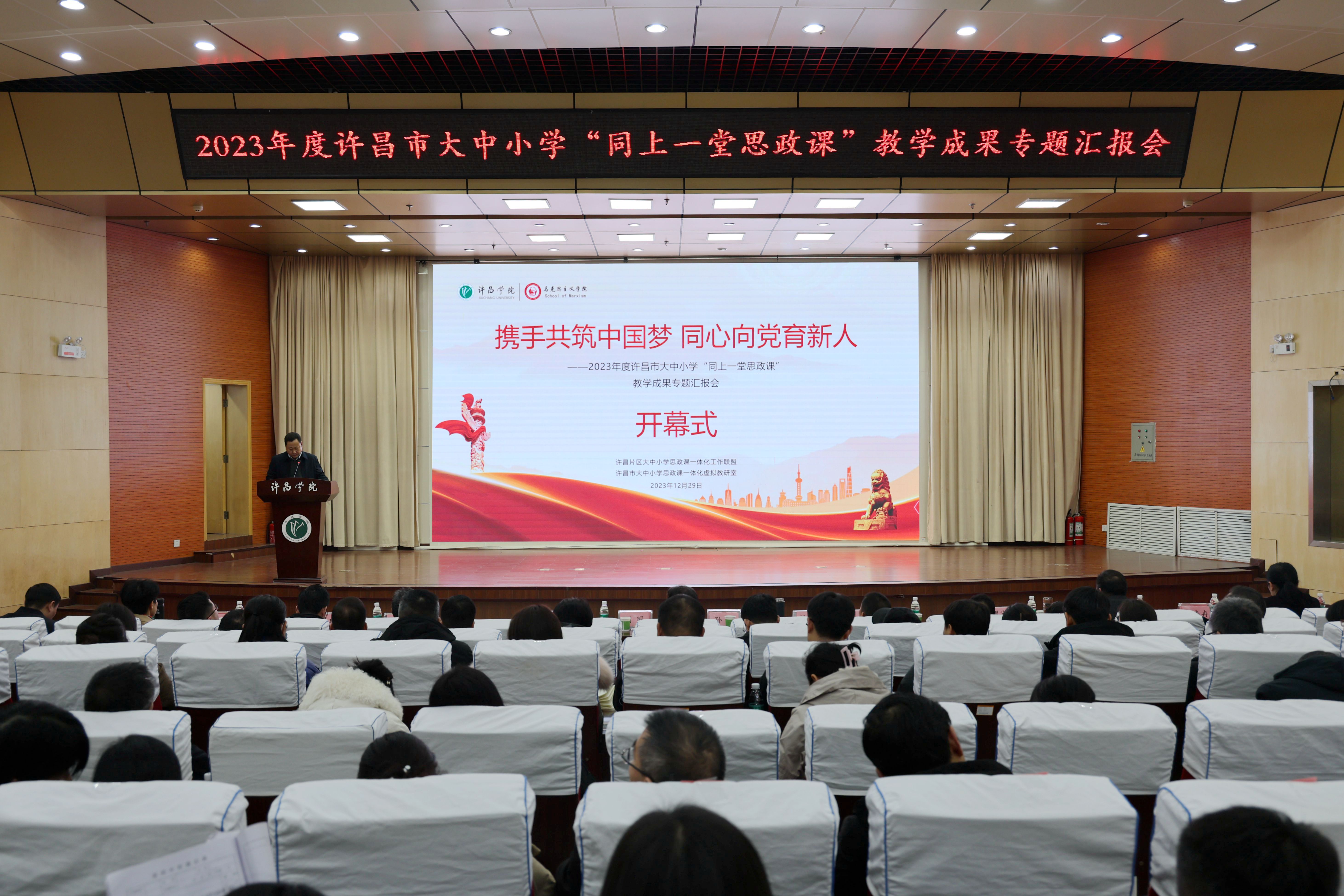 2023年12月29日,许昌市大中小学同上一堂“携手共筑中国梦 同心向党育新人”主题思政课教学成果专题汇报会在威尼斯官网图书馆学术报告厅举办。许昌市大中小学思政课一体化建设工作联盟主任委员、88038威尼斯党委副书记孙海,许昌市大中小学思政课一体化建设工作联盟副主任委员、许昌市委宣传部副部长刘明,许昌市大中小学思政课一体化建设工作联盟副主任委员、许昌市委教育工委专职副书记杨文超出席活动。许昌市大中小学思政课一体化建设工作联盟副主任委员、88038威尼斯党委宣传部部长王林主持开幕式。