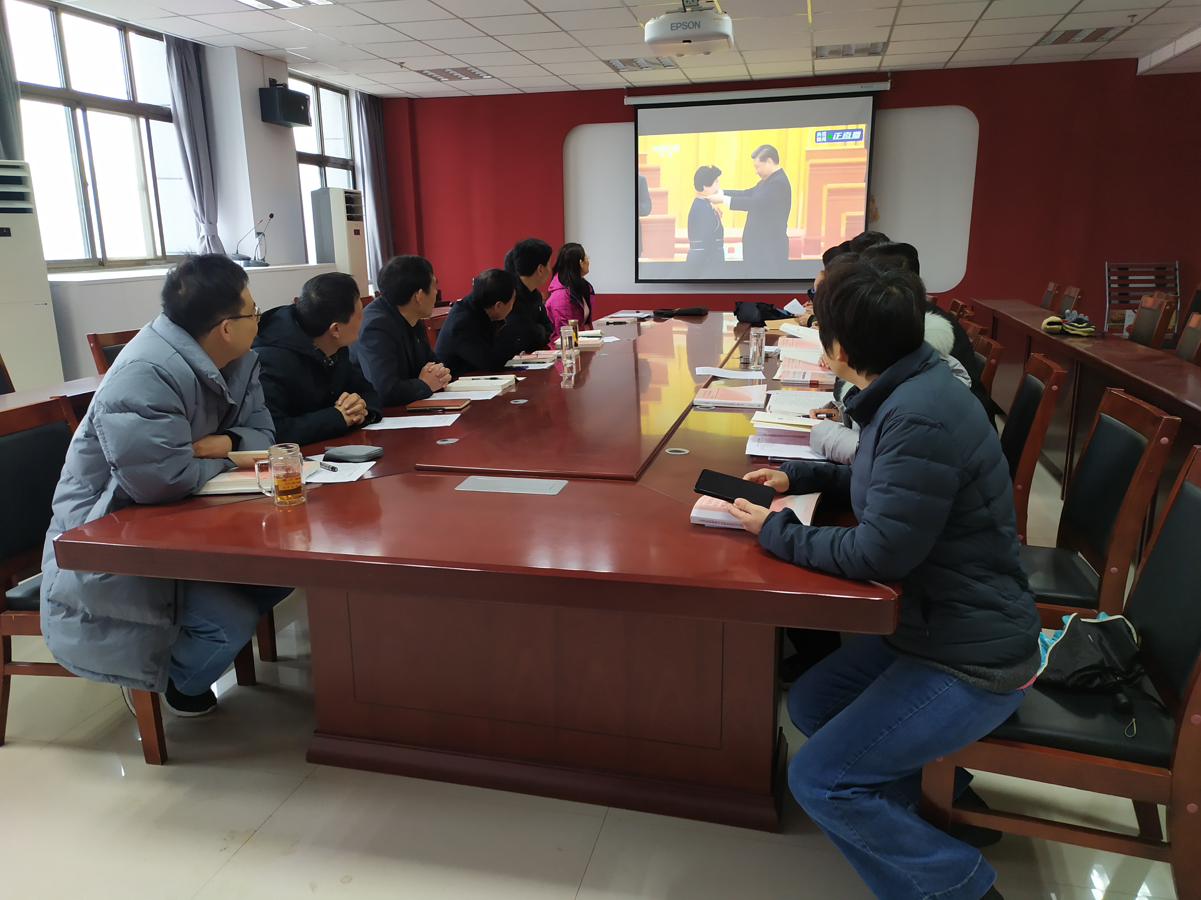 其次,作为集体备课会的重要内容,课程组全体成员观看了全国脱贫攻坚表彰大会,与会人员认真观看,在会后进行了热烈的讨论,教研室主任要求概论课要与时俱进,理论联系实际,要把脱贫攻坚表彰大会的会议精神融入到概论课的教学内容中。