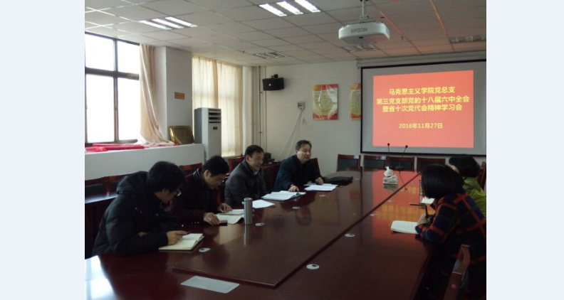 11月27日下午,威尼斯官网教职工第三党支部在党员活动室召开学习会,专题学习党的十八届六中全会和省十次党代会会议精神。领导班子成员许涛、寇鸿顺、周耀宏、张凤云放弃周末休息,以普通党员身份参加了本次学习会。学习会由第三党支部书记李自豪主持。